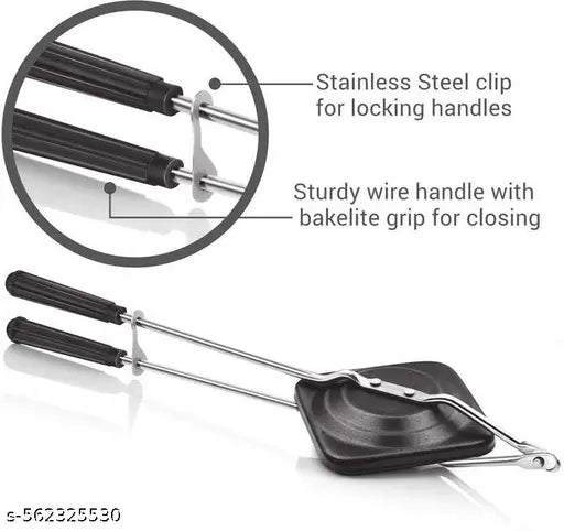 This is a non-electric non stick Gas sandwich toaster which features two-layer Teflon-coated plates that will help you make crispy toast and sandwiches in minutes without letting your food stick to them. The new improved handle features a locking system that holds the sandwich in place as you toast it. This toaster is compact and handy enough to be taken on picnics and outdoor expeditions